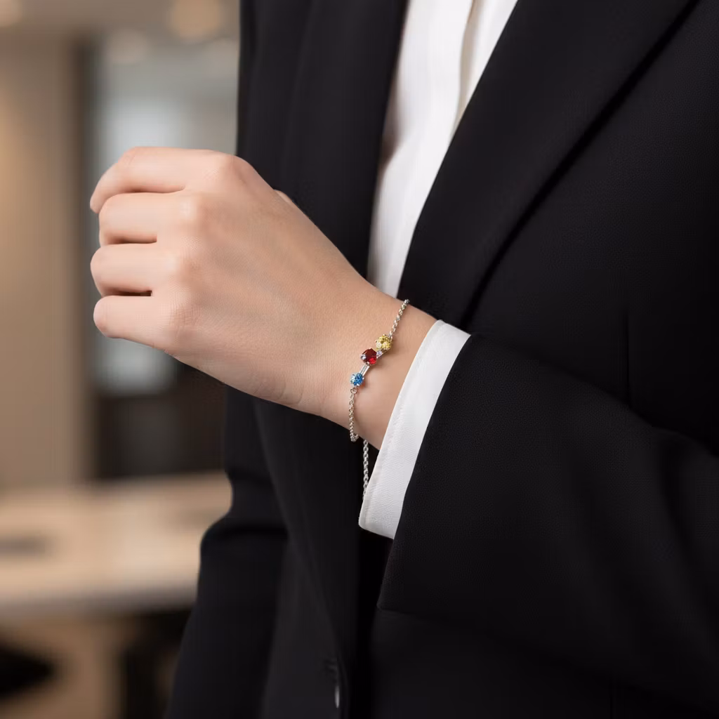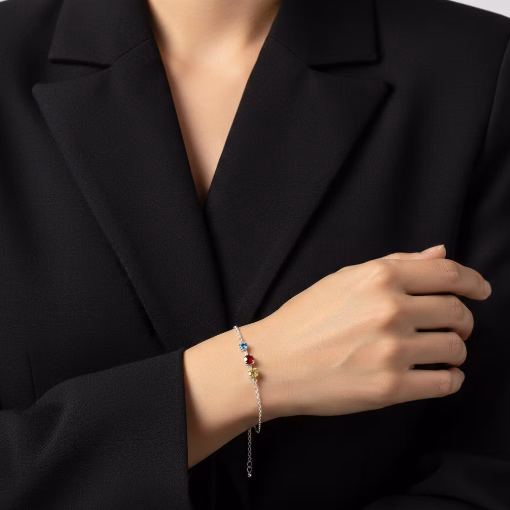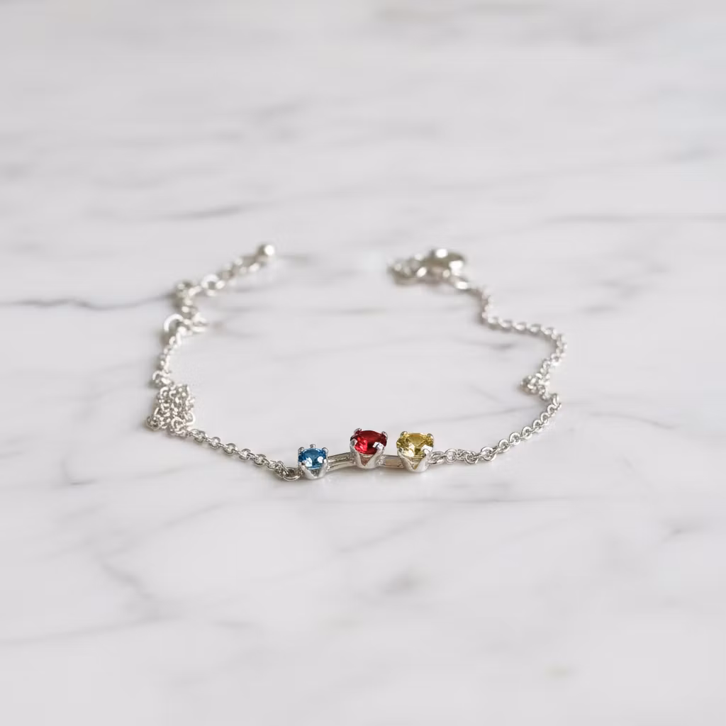 Armband i äkta silver med röd, gul och blå CZ-sten. Smalt silverarmband med kedja och små färgglada glänsande kubik zirkonia stenar i mixade färger. Armbandet har 3mm och 4mm små stenar i Djurgårdens färger. Det färgglada silverarmbandet är tillverkat i 925 sterling silver med förlängningskedja. Det här vackra lagarmbandet finns endast i ett unikt exemplar. Armbandet är en perfekt present till tjejen som håller på Dif.
