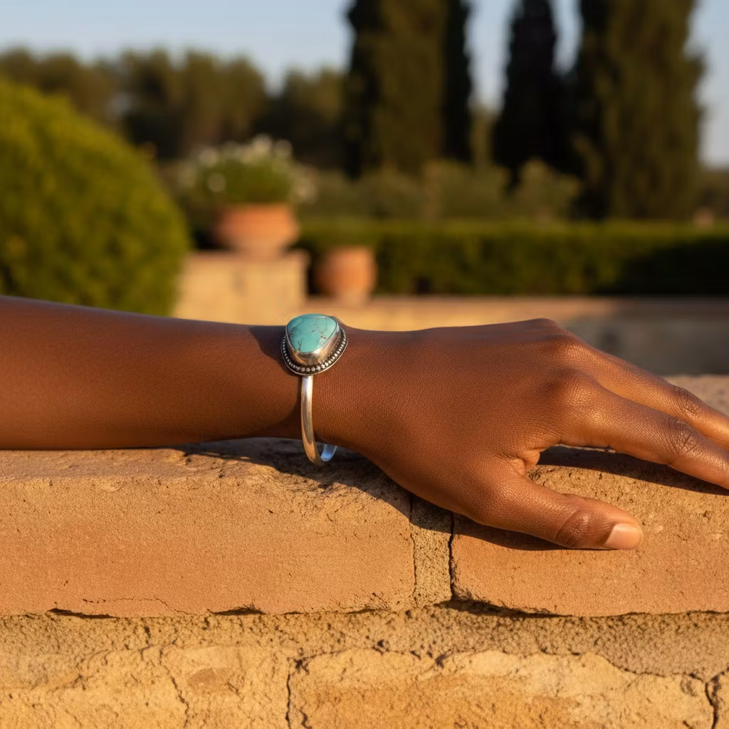 Turkosen har genom historien används som talisman för både kungar, shamaner och stridande för att ge lycka, tur och skydd åt bäraren. Turkos är en av de äldsta mest kända ädelstenarna vi känner till. Det är en sten som förknippas med styrka och beskydd. Turkosen sägs vara bra mot trötthet, depression och sägs bringa känsla av välbefinnande. Turkosen sägs främja vänlighet, frid och medkänsla. Turkosa ädelstenar bär på en feminin energi. Betydelsen av turkos som månadssten är en symbol för lycka och används av många som en kärleksamulett.