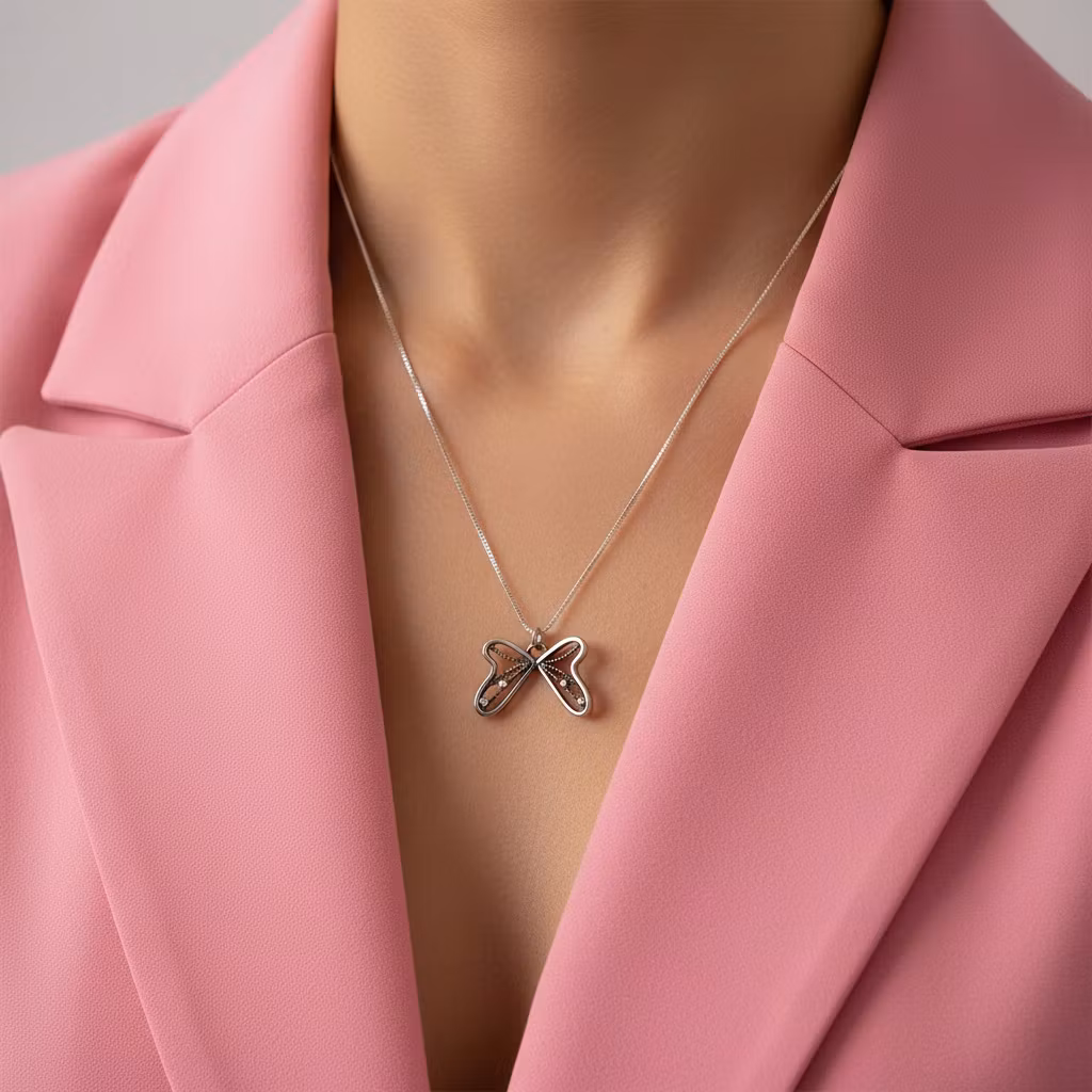 Halsband med unik fjäril silhuett i äkta silver. Handgjort fjärils halsband med detaljrik fjäril som oxiderats för en antik silver look. Kedjan är i ljust silver. Hänget är ca 20mm långt och 25mm brett. Designat fjärilshalsband i sterling silver, perfekt för en stilfull och unik stil. Polerduk medföljer.