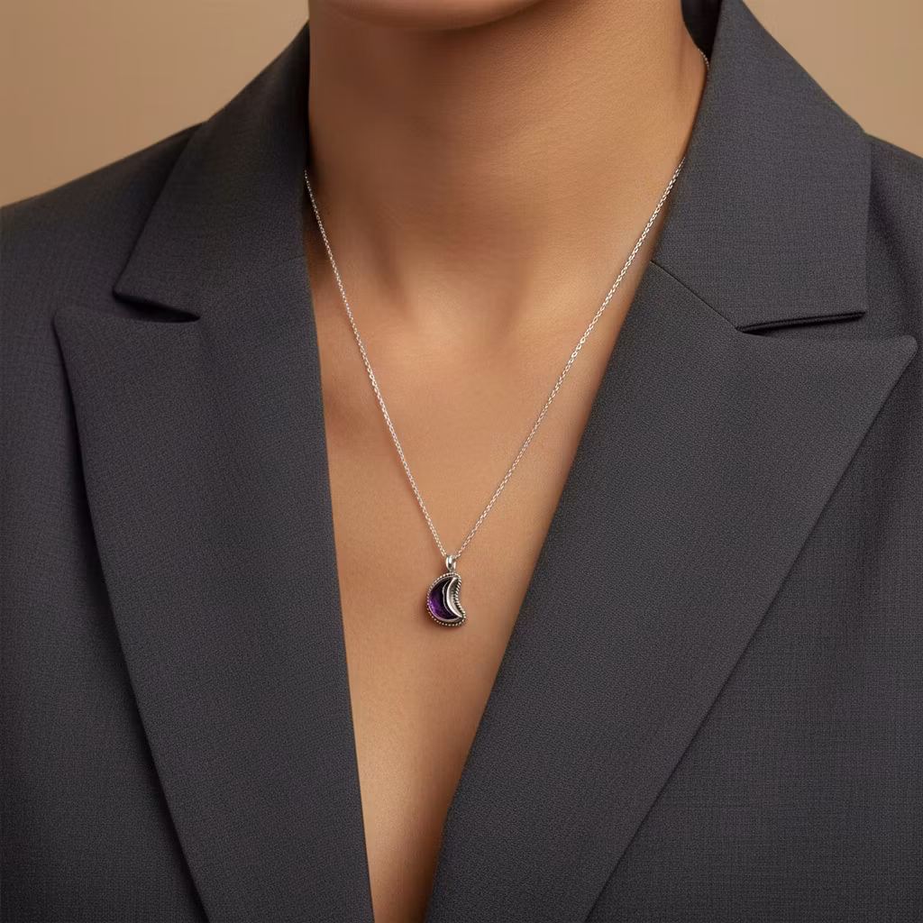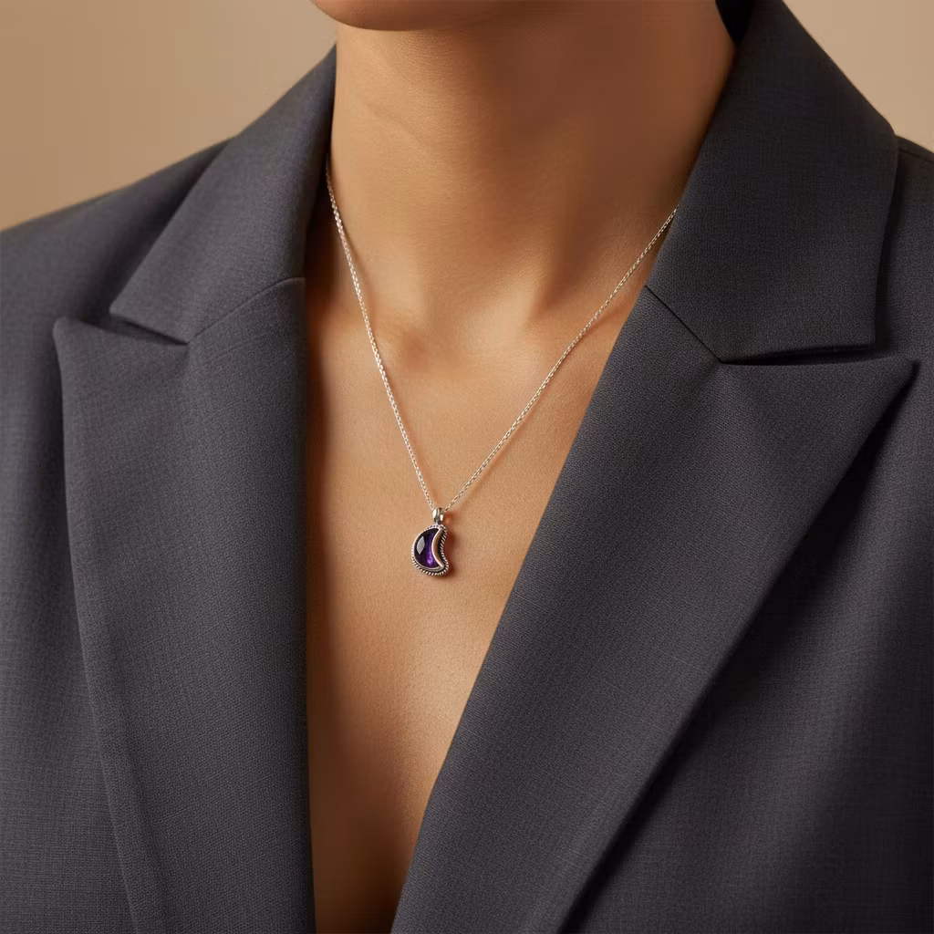 Ametist är förknippad med lugn och harmoni. Ametist har sedan långt tid tillbaka varit länkad till kungligheter, makt, lyx och visdom. Den lila ädelstenen sägs främja känslomässigt välbefinnande, klara tankar och sägs vara bra mot stress och känslor av skuld.