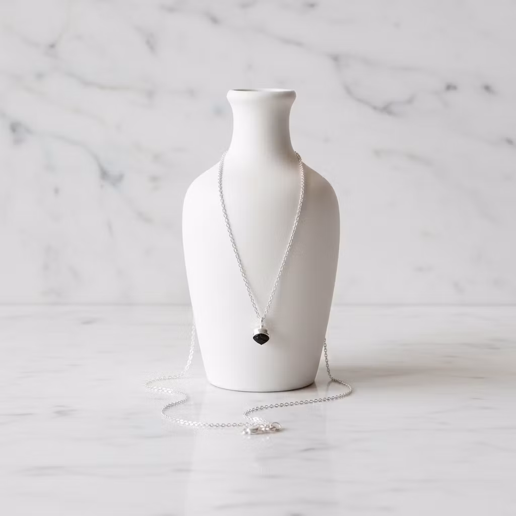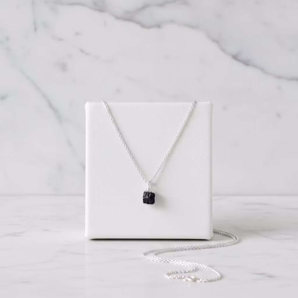 Silverhalsband med liten svart rå turmalin sten. Halsband i äkta silver med grov turmalin i mycket fin kvalitet. Stenen är ca 6mm - 7mm och hängets totala längd är ca 12mm. Då stenarna är äkta naturliga är varje hänge unikt. Formen och tjocklek på turmalinerna skiljer sig lite åt. Alla stenar är precis lika fina. Elegant halsband med svart rå ädelsten. Polerduk medföljer.