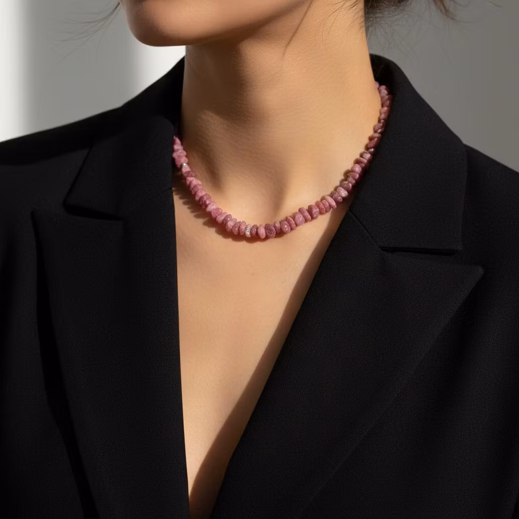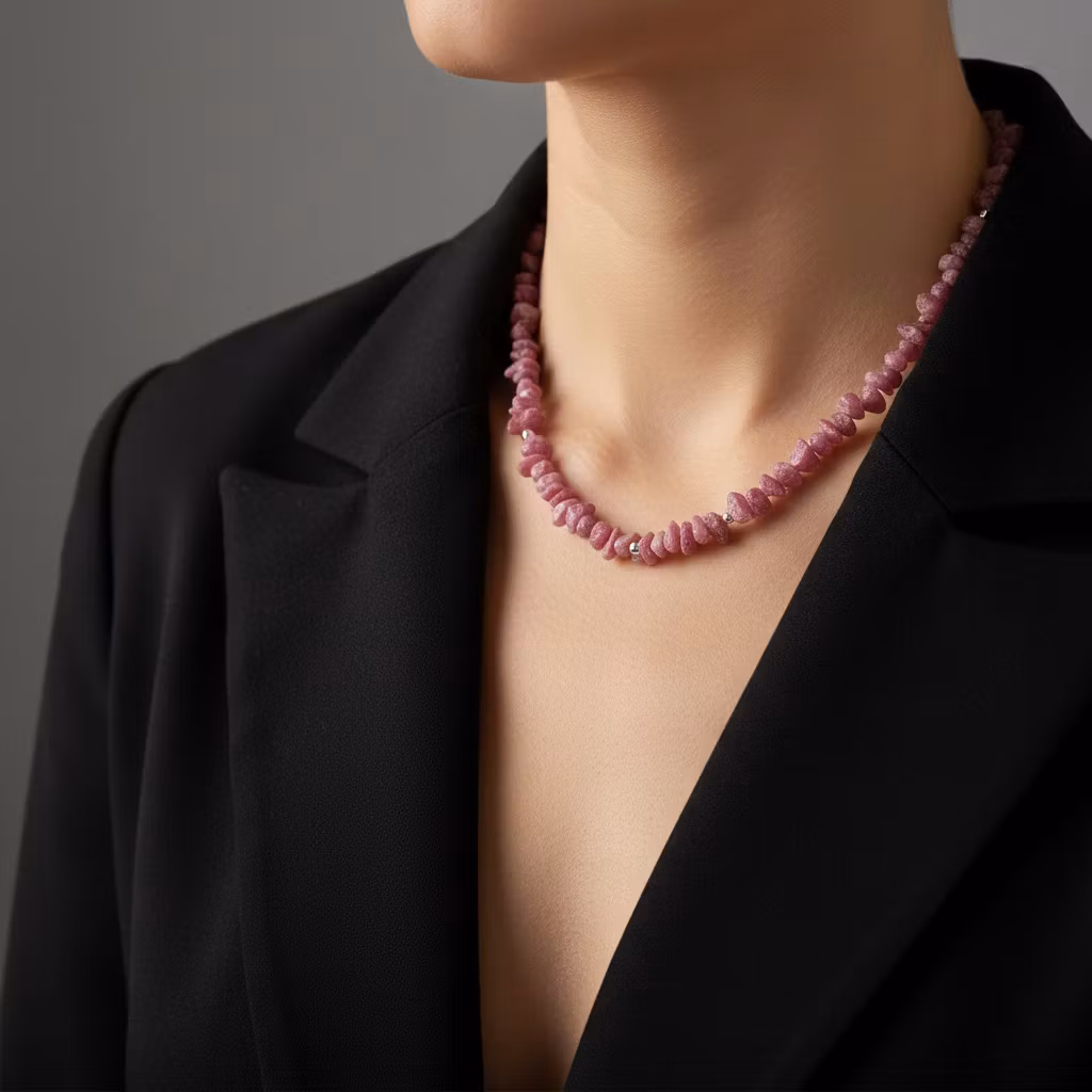 Kort rå turmalin halsband i äkta silver med rosa råa ädelstenar. Ädelstenshalsband med naturliga turmalinstenar i olika rosa nyanser med två små facettslipade silverkulor på sidorna av halsbandet. Halsbandet har en förlängningskedja med berlock. Månadsstenshalsband oktober. Det rosa turmalin halsbandet är perfekt för dig som älskar råa och grova ädelstenar i djärv stil. Med dom grova ädelstenarna bär du med dig av turmalinens kristallenergi.