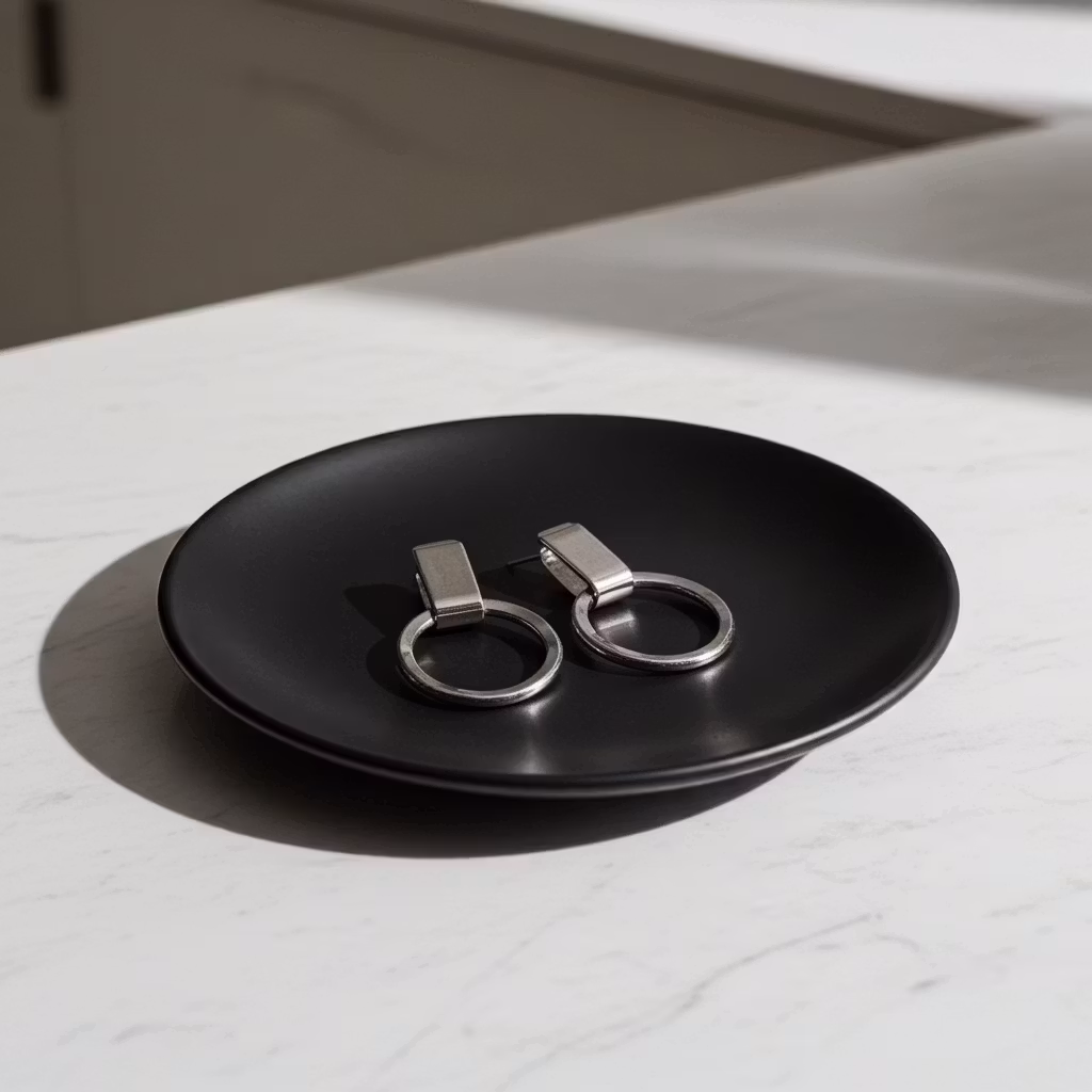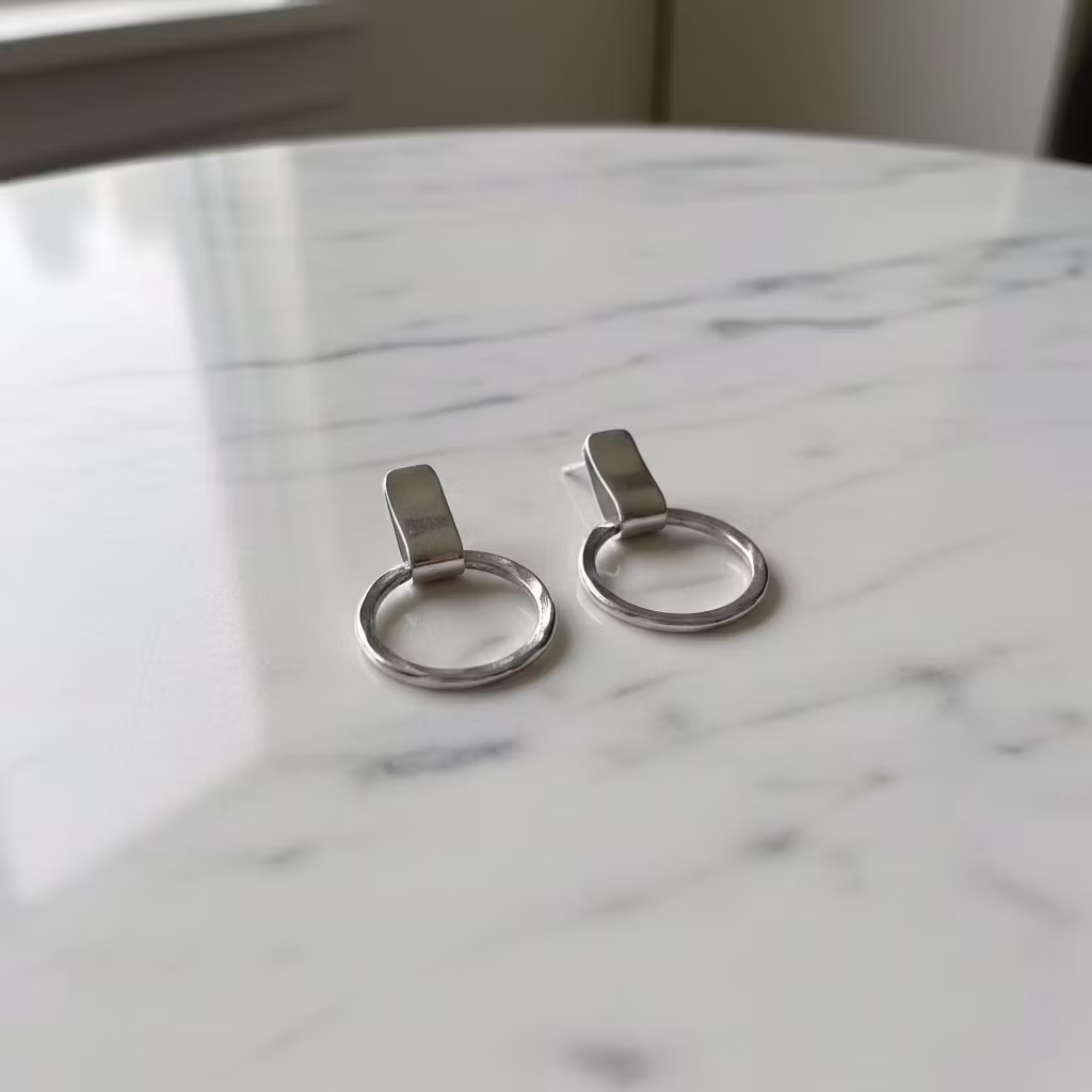 Silverörhängen med runda hamrade cirklar i ljust glansigt silver. Örhängena är tillverkade i äkta silver med runda ringar på en slät avlång platta. Stilrena cirkel örhängen i sterling silver med stift för hål i öronen. Polerduk medföljer.