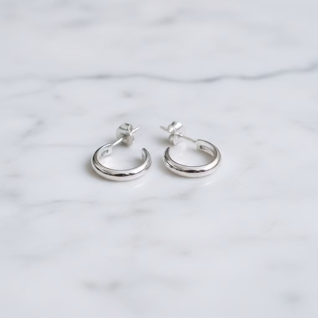 Korta runda silverörhängen hoops i äkta silver med slät yta. Örhängena är 3mm breda och är halvrunda i formen. Skinande blanka silverörhängen som passar för alla tillfällen. Polerduk medföljer.