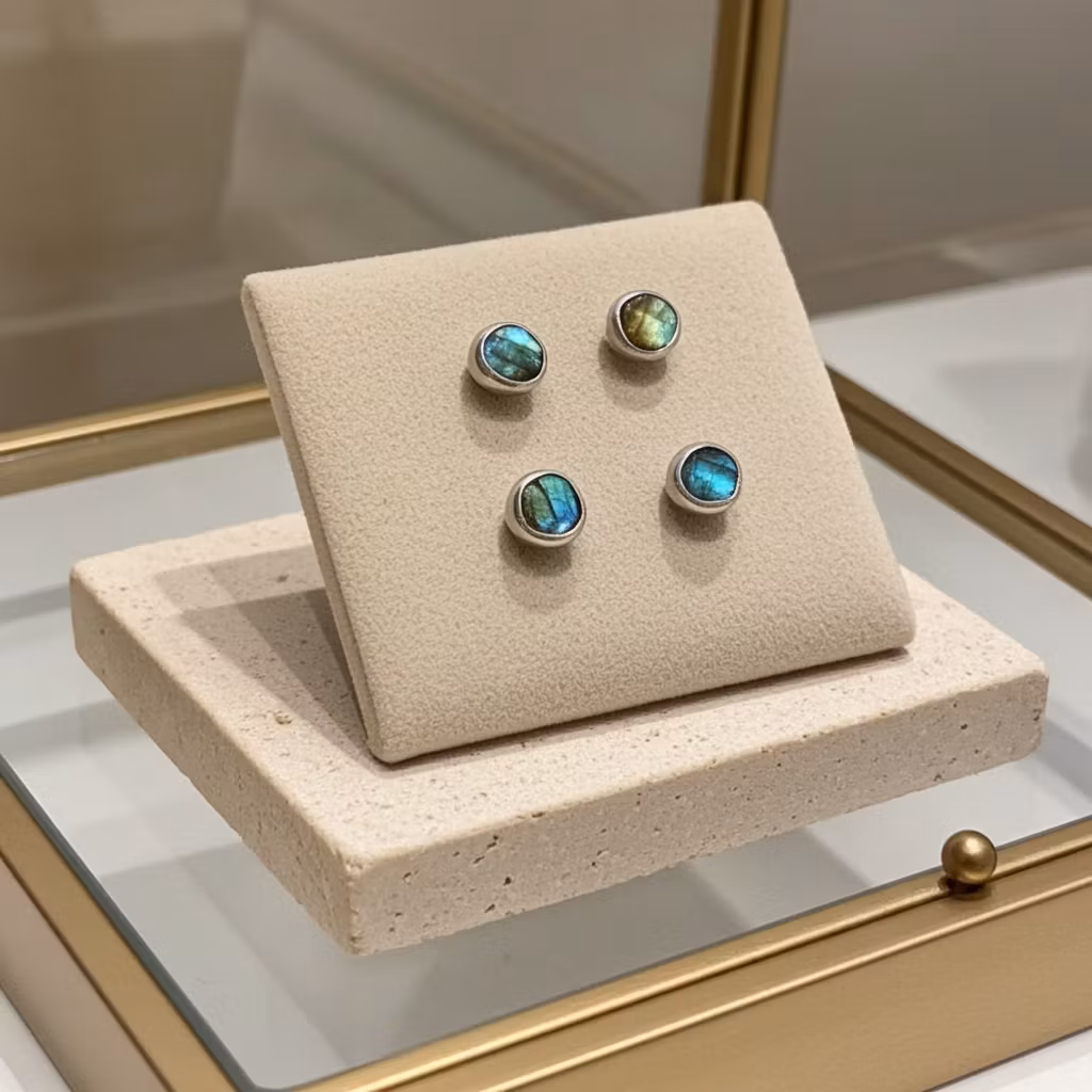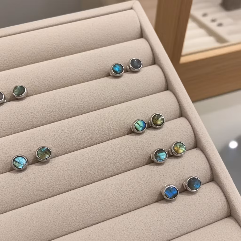 Rå labradorit örhängen i äkta silver med skimrande vackra labradoriter. Stiftörhängen med äkta naturliga labradoritstenar i mycket fin kvalitet. Alla stenar är unika och skiljer sig lite åt i form, skimmer och mått. Alla stenar skimrar fint. Labradorit är en ädelsten som skimrar i olika färger när stenen träffas av ljuset. Dom råa labradorit örhängena har en platt och grov yta. Polerduk medföljer.