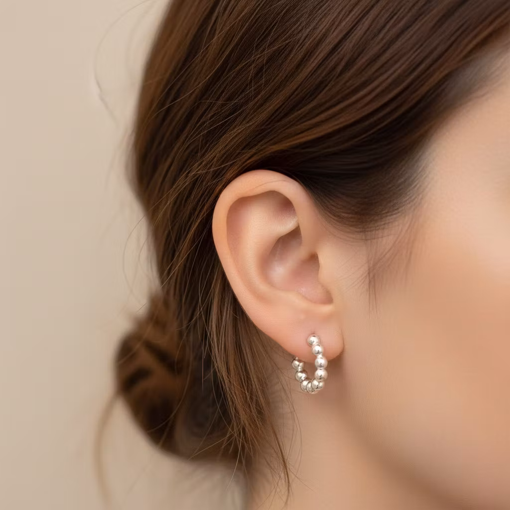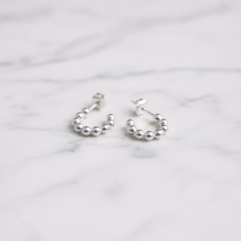 Tjocka kulörhängen i äkta silver med stift för hål i öronen. Korta silver hoops i stilren och elegant design. Örhängena är 3,2mm tjocka och levereras med bakstycken. Runda klassiska örhängen av små kulor. Polerduk medföljer.