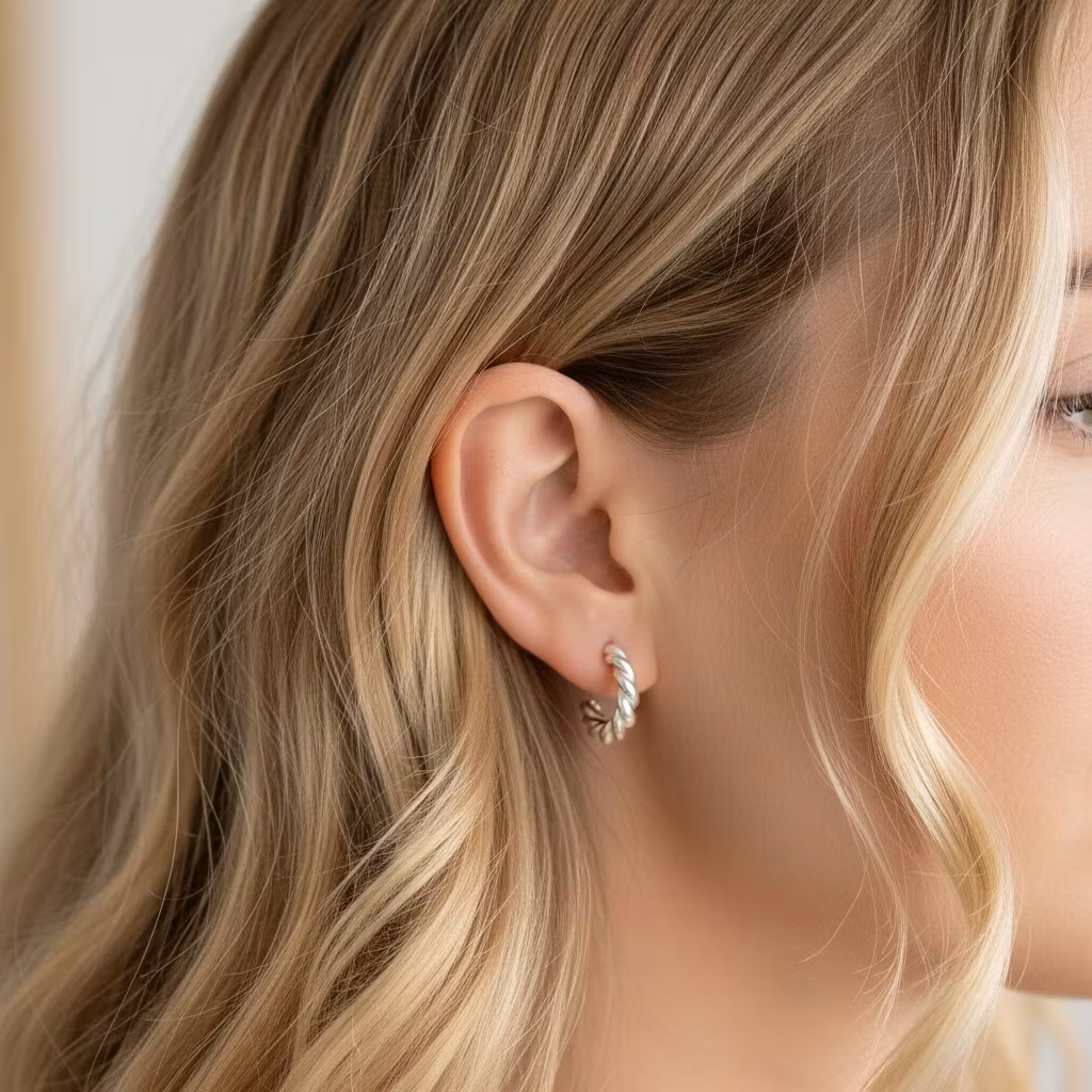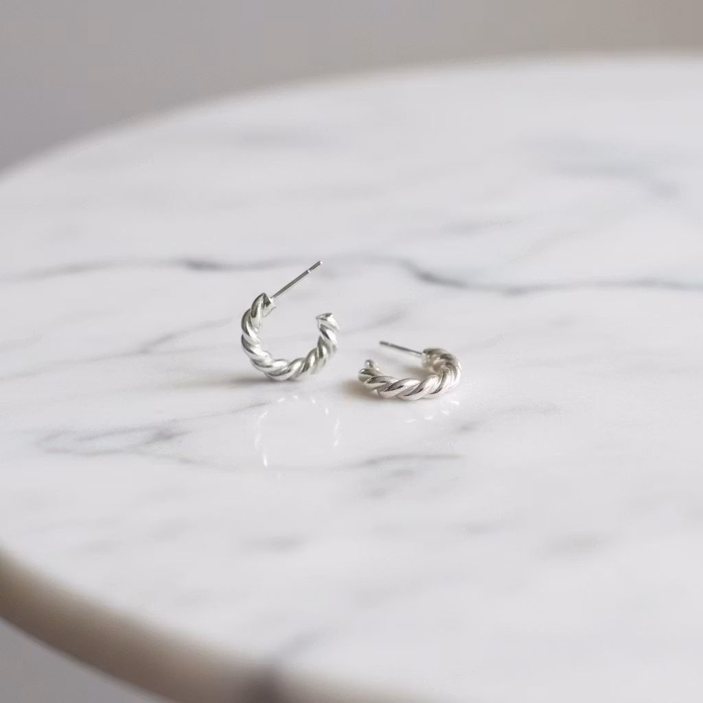 Korta tjocka tvistade silverörhängen med stift för hål i öronen. Runda tvinnade örhängen i äkta 935 sterling silver med en tjocklek på 3,2mm. Stilfulla örhängen för eleganta tillfällen. Polerduk medföljer.