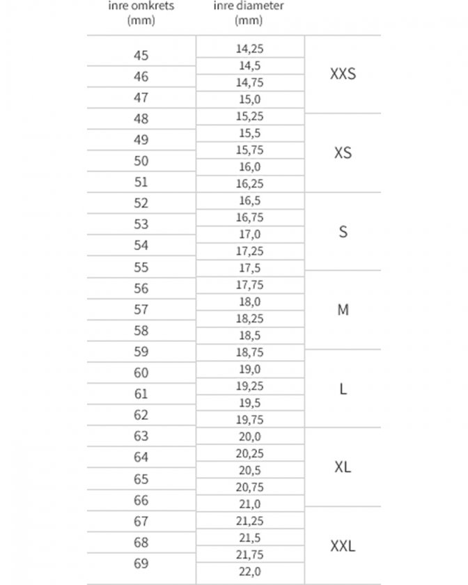 Att välja rätt storlek på sitt smycke är inte alltid så lätt, speciellt om man ska köpa ett smycke till någon annan. Vi har skapat en guide som vi hoppas ska underlätta ditt val av storlek. Är du osäker så går det bra att kontakta oss för råd och hjälp med storlekar.