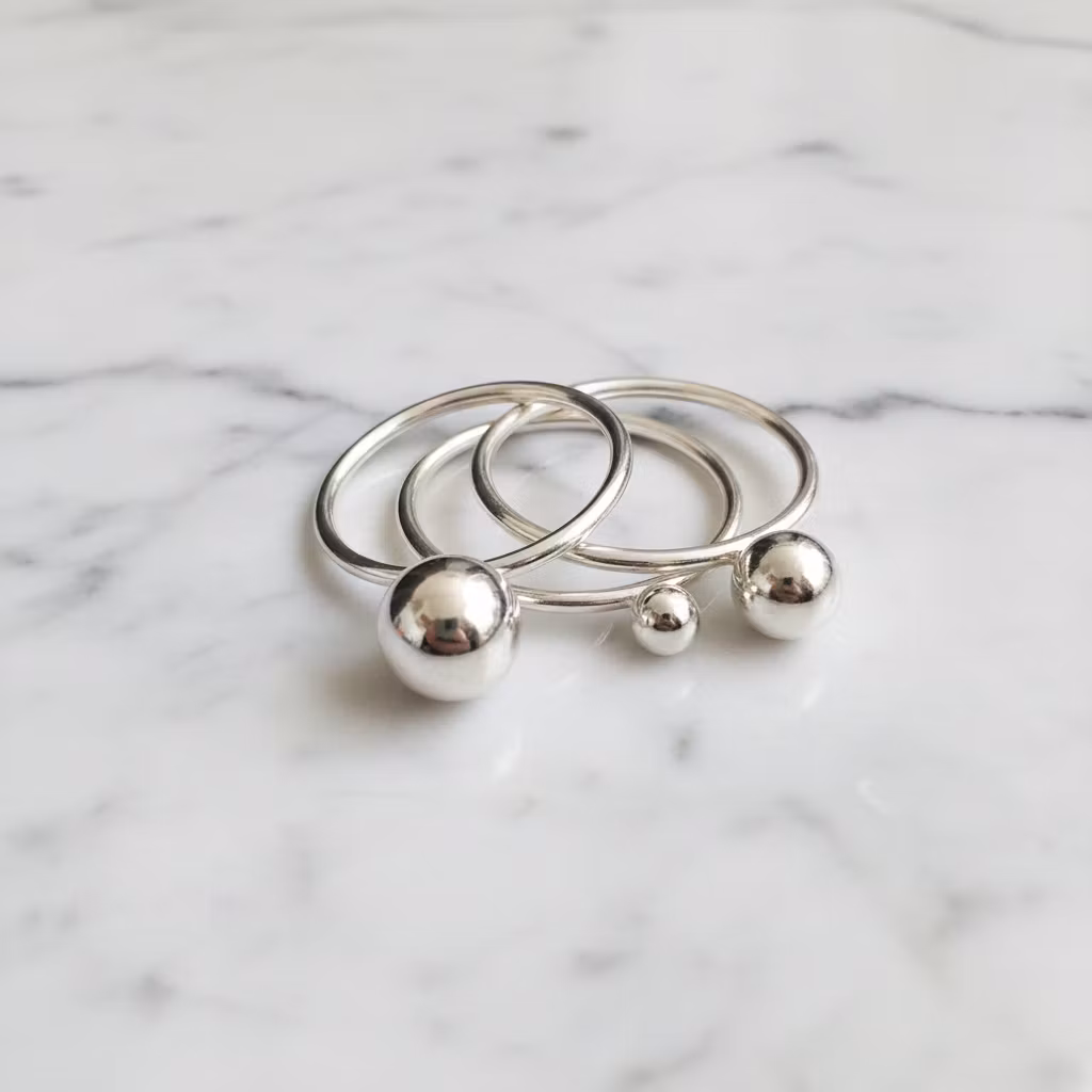 3-pack silverringar med kula är det perfekta valet för den som söker efter en snygg och stilren look. Dessa smala silverringar är tillverkade av äkta silver och har olika diameter på kulorna, 8mm, 6mm och 4mm. De har en bredd och tjocklek på 1,5mm som ger en elegant och sofistikerad look. Flerpacket silverringar i sterling silver med kulor är ett utmärkt alternativ för den som vill ha ett modernare utseende. De är lätta att bära och passar både till vardags och till fest. Denna 3-pack silverringar med kulor är ett måste för alla som älskar att skapa sin egen stil och göra ett unikt intryck. Polerduk medföljer.