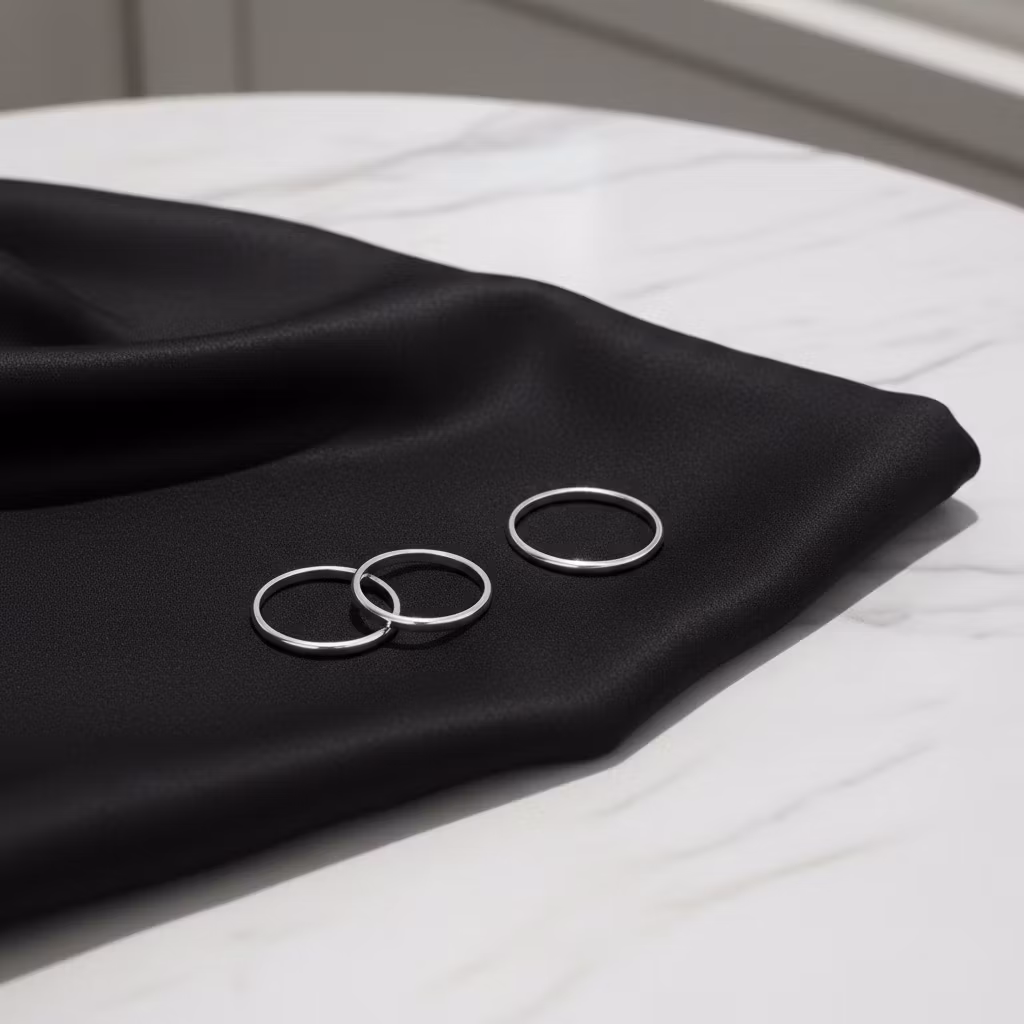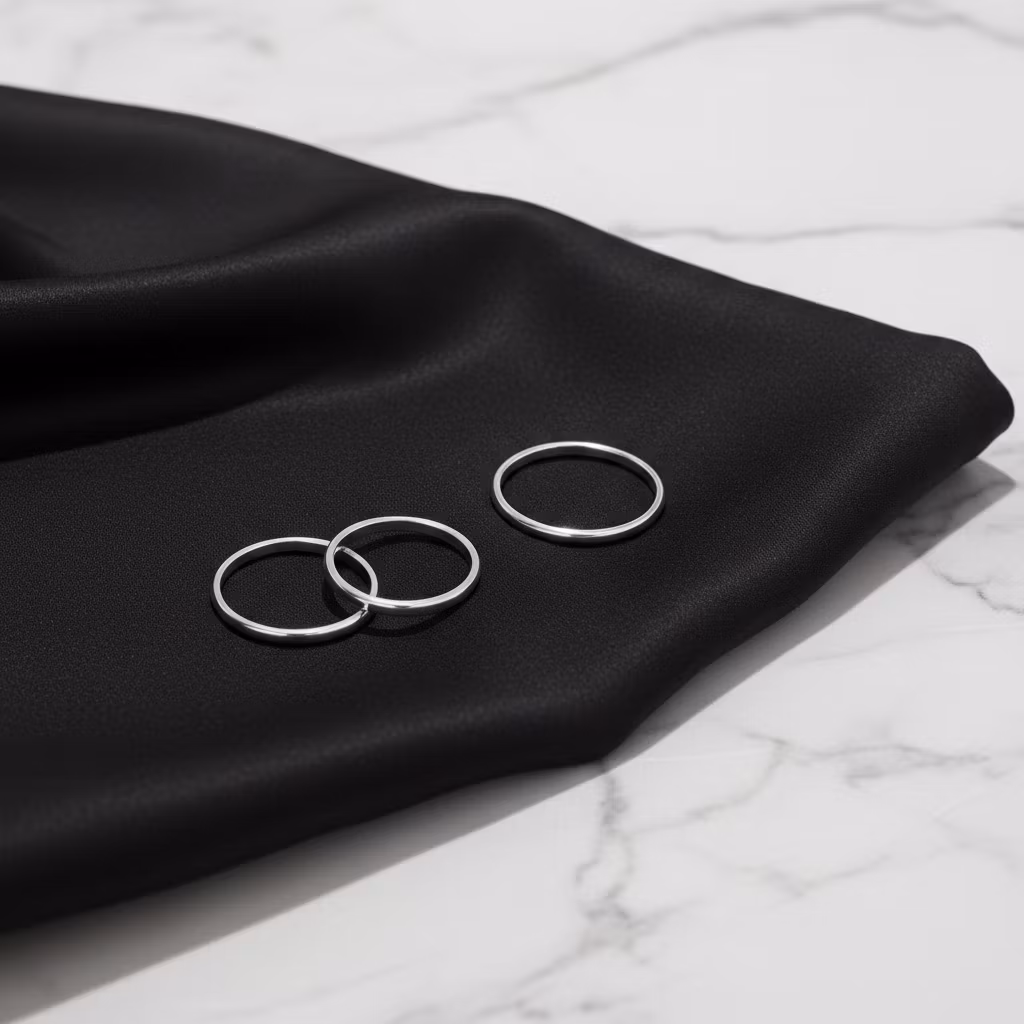 3-pack släta silverringar av återvunnet sterling silver. Ringarna är 1,5mm breda och tjocka. Välj olika storlekar om du vill ha ringarna på olika fingrar, eller välj samma storlek för att ha alla tre ringar på samma finger. Dom smala ringarna är perfekta som stapelbara ringar eller för en minimalistisk stil. Oavsett kommer dessa ringar bringa stil och elegans åt varje outfit. Polerduk medföljer. Uppge din eller dina storlekar i meddelanderutan som finns i kassan.