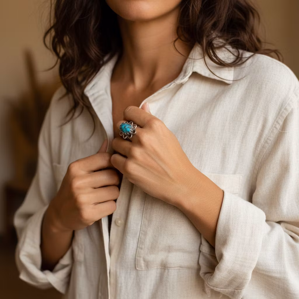 Turkos är en kraftfull ädelsten som sägs främja vitalitet och styrka. Turkos är känd för att vara en lyckobringande och beskyddande sten som främjar inre frid.