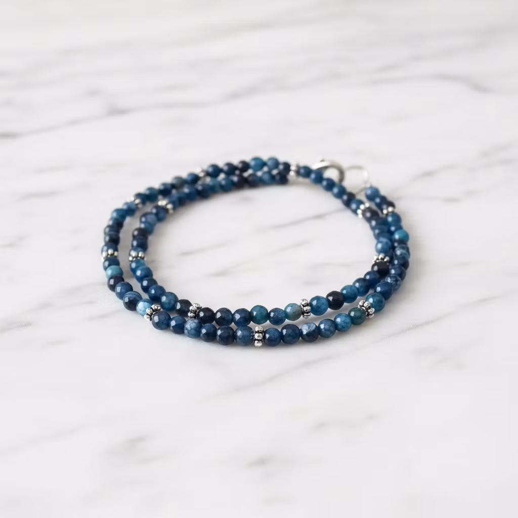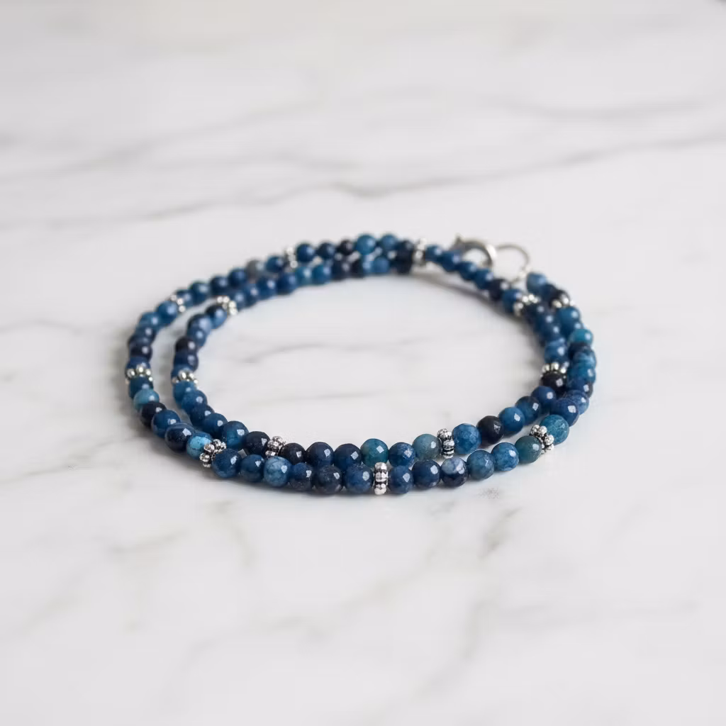2 rader blått facsettslipat pärlarmband med en mix av blå agatstenar i olika nyanser av blått. Armbandet viras två varv runt handleden och stängs med lås. Blått elegant agat armband med stenar som skimrar och glänser fint på armen.