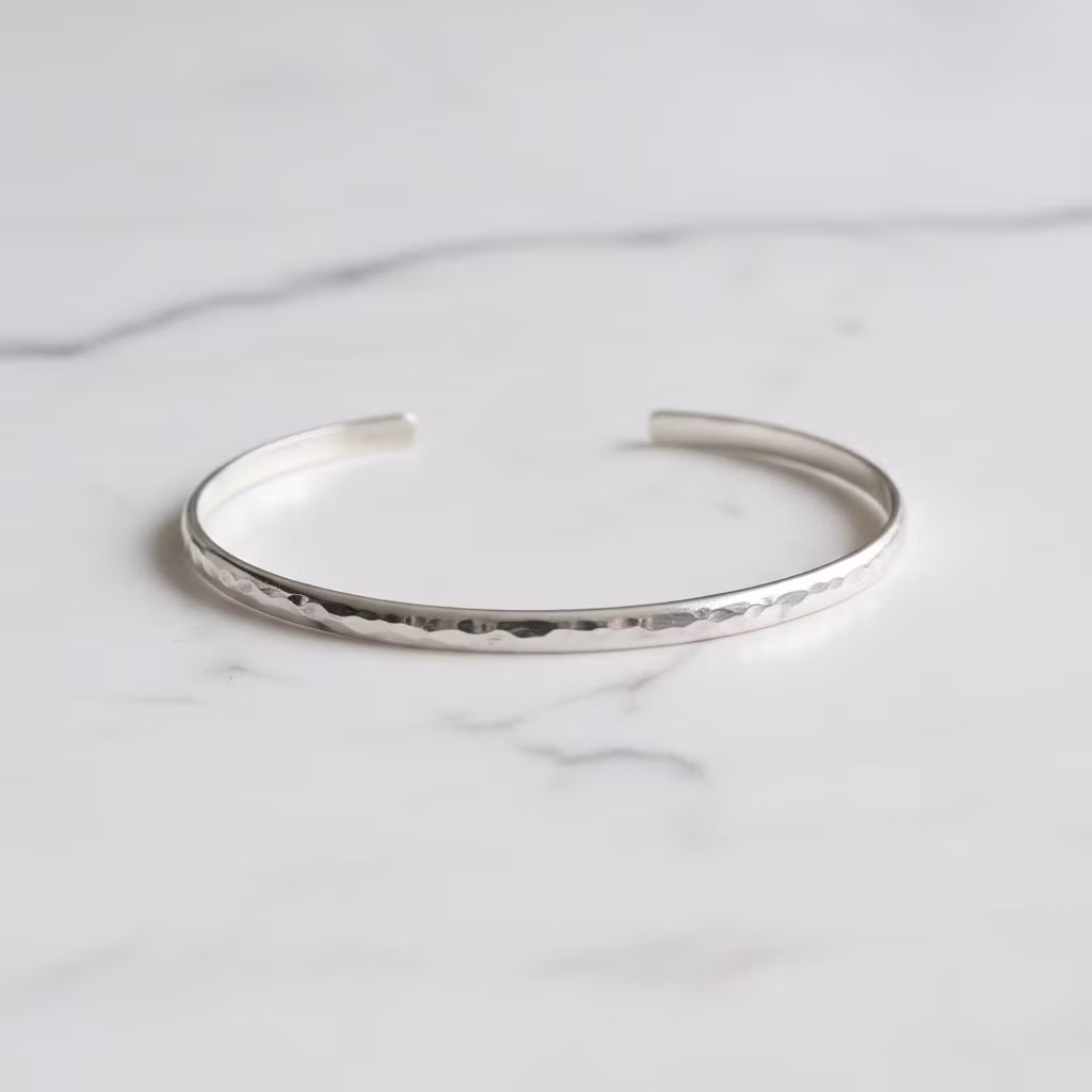 Cuff armband i sterling silver för herr med slät eller hamrad yta. Stelt armband i äkta silver med blankpolerad yta. Välj mellan hamrat eller slätt silverarmband. Armbandet är 3mm brett och är halvrund i formen. Stilrent och klassiskt armband som ger en touch av elegans och stil. Polerduk medföljer.