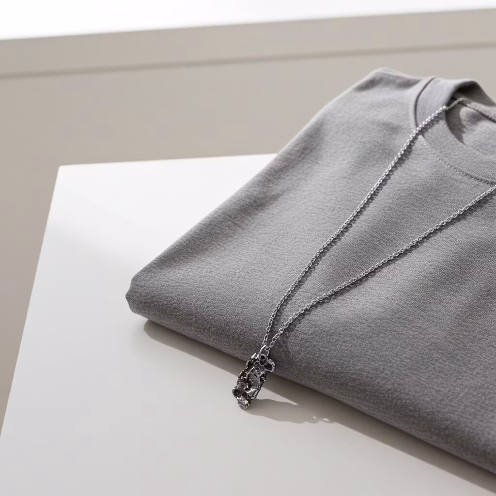 Halsband i äkta silver med rustikt avlångt hänge i oxiderat silver. Halsbandet är tillverkat i 925 sterling silver med strukturerad avlång bricka. Halsbandet är tillverkat för hand vilket innebär att form och struktur på hänget skiljer sig lite åt. Detta gör varje halsband unikt. Hänget är ca 20mm långt. Hängsmycket är skapat av återvunnet silver. Halskedjan är av ljust silver och hänget är oxiderat med ljusa partier. Snyggt och trendigt herr halsband. Polerduk medföljer.